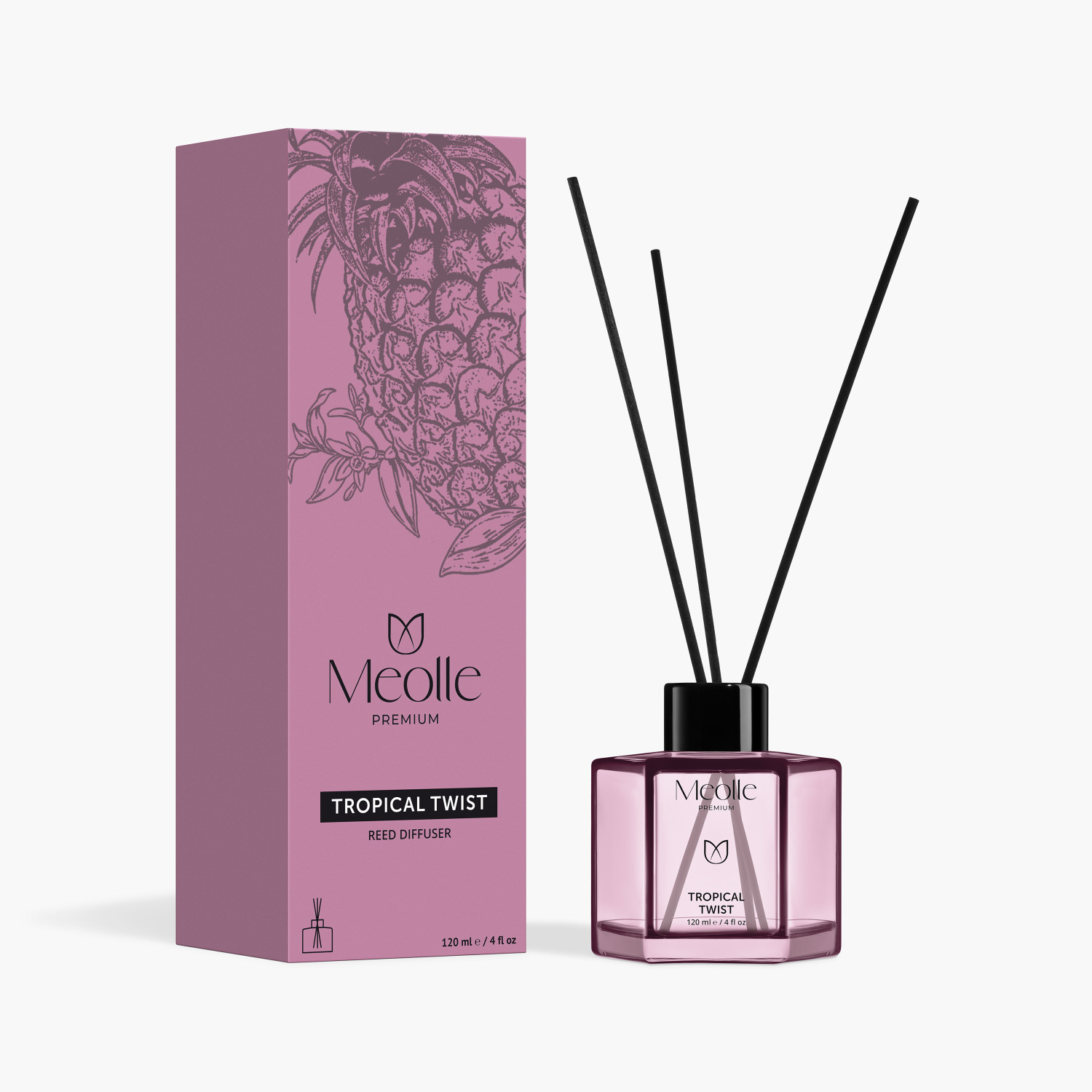 Inspirat din energia locurilor în care vara pare că nu se termină niciodată, odorizantul cu bețișoare parfumate Tropical Twist aduce în interior o prospețime solară, luminoasă și calmă în același timp. Notele exotice de papaya și ananas se împletesc cu accente cremoase de vanilie și pralină, într-un parfum care nu invadează, ci colorează discret aerul cu optimism și energie.